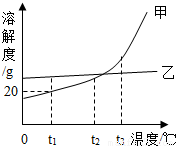 甲、乙两种不含结晶水的固体物质溶解度曲线如图,下列说法中不正确的是( )