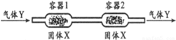 一定温度下,在下图所示装置中,固体X与气体Y反应生成气态产物,当改变温度时该气态产物发生逆向反应,重新生成X和Y.发生的化学反应为: