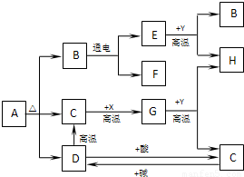 A、B、C、D、E、F、G、H分别代表相关反应的一种物质.已知:X、H为黑色固体单质,D是大理石的主要成分,Y为红棕色粉末.常温下C、E、F、G均为无色气体,图中有部分生成物未标出.请填写以下空白: