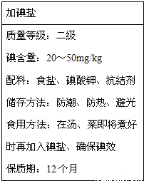 为了消除碘缺病,我国政府规定某地区居民的食用盐必须加碘.下图为广东盐业总公司生产的加碘盐的部分标签,请根据标签图回答:
