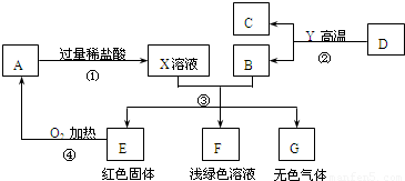 A、B、C、D、E、F、G为常见的物质,其中B、E、G属于单质,反应②是炼铁工业中的主要反应,如图是它们之间的相互转化关系.请回答: