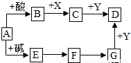 如图是初中化学常见物质间的转化关系(反应条件和部分产物已略去),其中A为钠盐,X、Y均为黑色粉末,D为红色金属单质,F在常温下为液态,并回答下列问题: