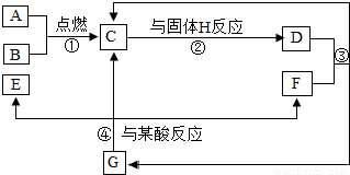 初中化学中几种常见物质有如图所示的转化关系,其中A、B常温下为气体单质,反应④常用于实验室制F气体,G为难溶于水的白色固体.