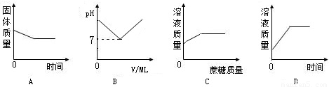 表示一定温度下,向一定量的饱和氯化钠溶液中不断加入蔗糖晶体时,溶液的质量与蔗糖质量的关系图