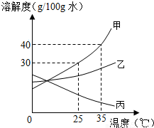 ④将35℃时丙的饱和溶液降温到25℃,则其溶液的溶质质量分数