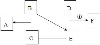 A、B、C、D、E、F是常见的酸、碱、盐、氧化物中的一种,其中A、B是建筑材料,F是厨房中的调味品,他们间有如右图的关系(“--”表示物质在一定条件下可以发生反应,“→”表示物质间在一定条件下可以相互转化,反应条件和部分生成物省略).回答下列问题: