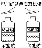 | | ______(填“浓”或“稀”)盐酸瓶口的蓝色石蕊试纸很快变红. | 即使是同种酸,由于 ______不同,它们的性质不完全相同. |