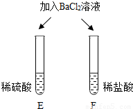 E试管中产生______, F试管中无明显现象. | 不同的酸根会导致酸的“个性”差异.因此,可用氯化钡溶液鉴别盐酸和硫酸. |