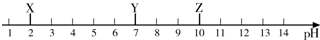 X、Y、Z三种物质的近似pH如图所示.下列说法错误的是( )