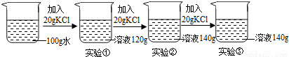 (3)实验①、②、③的溶液,溶质的质量分数分别为a、b、c,则它们的大小关系是