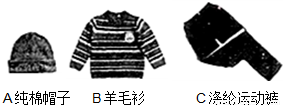 (1)下列服装所使用的材料中,属于有机合成材料的是