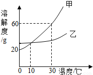 D.30℃时,甲物质饱和溶液中,溶质质量分数最大为60%