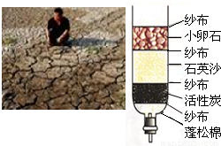 (2)有些村民取浑浊的坑水作生活用水,有的同学利用所学的知识将浑浊的坑水用简易净水器(如图所示)进行净化,其中小卵石、石英砂的作用是