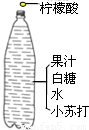 瑶瑶同学在家中自制“汽水”,她在约500mL的饮料瓶中加入2匙白糖、1.5g小苏打(碳酸氢钠)和适量果汁,注入凉开水,再加入1.5g柠檬酸,立即旋紧瓶盖,摇匀,放入冰箱.半小时后,她就喝到清凉甘甜的“汽水”.请回答: