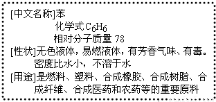 (1)由标签提供的信息推测苯的物理性质有