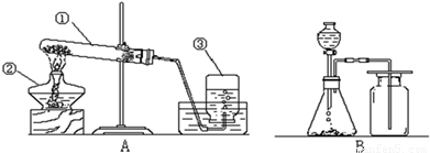 装置(填A或B),该反应的化学方程式为