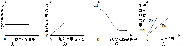 D.④向等质量且过量的锌粉和铁粉中,分别加入到等质量且质量分数相同的稀盐酸