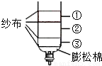 某同学用空塑料饮料瓶做简易净水器(如图所示).请你帮他继续设计,确定小卵石、活性炭和石英沙三种材料的位置.请填写以下两种材料所在位置的序号:小卵石