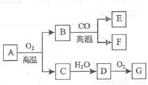 A~G七种物质之间具有如下图所示的转化关系.已知:A是一种含铁的矿石的主要成分,其中金属与非金属元素的原子个数比为1:2;B中铁的质量分数为70%,C是有刺激性气味的无色气体,它是形成酸雨的物质之一;F可溶于G的稀溶液并产生气体,该气体是有利于环境保护的理想燃料.请回答下列问题: