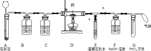 | ② | 当E中出现浑浊时,打开b,关闭a,点燃酒精灯 | D中Na剧烈燃烧,产生白烟内壁附着黑色、白色固体 G中产生黑色沉淀 | 反应产物一定有 和 |