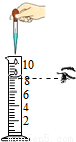 向10ml量筒中加水接近8ml
