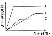某校化学活动小组为探究X、Y、Z三种金属与酸的反应情况,进行了如下实验:取等质量的X、Y、Z分别与足量的溶质质量分数相等的稀硫酸反应,都生成+2价金属的硫酸盐,反应情况如右图所示.下列对该图象理解的叙述中,正确的是( )
