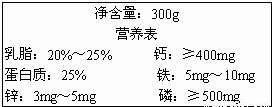 如图是某奶粉包装袋上的部分说明,根据说明判断下列说法中正确的是