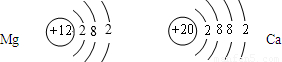 元素周期表中,钙元素和镁元素同在一个纵行里,它们的原子结构示意图如图所示,则: