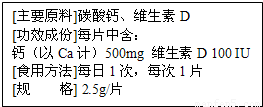 下图为某厂生产的高钙片标签上的部分文字,请仔细阅读后回答下列问题.