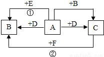 如图,A、B、C、D、E、F均是初中化学的常见物质,A、B、C均含有同一种元素.变化①的现象是颜色由黑变红,变化②的现象是颜色由红变黑,相应变化的生成物没有全部列出,各变化的条件也未标出.