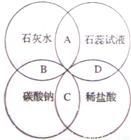 石蕊试液、稀盐酸、石灰水、碳酸钠是常见的四种物质,它们的溶液之间的反应关系如图所示.图中两圆相交的部分(A、B、C、D)表示物质间反应的主要实验现象,其中描述正确的是( )