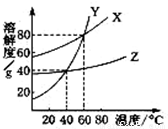 X、Y、Z三种物质的溶解度曲线如图所示.下列叙述中,正确的是( )