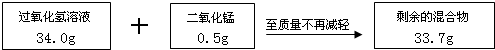 过氧化氢不稳定会自然分解,久置的过氧化氢溶液,其溶质的质量分数会变小.某兴趣小组为测定实验室中一瓶久置的过氧化氢溶液中溶质的质量分数,进行实验.测得相关数据如图所示: