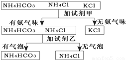 4C1、KCl三种物质的过程,其中试剂甲和乙分别可能是( )