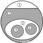 如图表示的是纯净物、单质、化合物、含氧化合物、氧化物、碱之间的包含、不包含关系,若整个大圆圈代表纯净物,则在下列选项中,能正确指出①、②、③、④、⑤所属物质类别的是( )