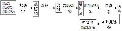 为了将混有硫酸钠、碳酸氢铵(不稳定,受热易分解生成氨气、二氧化碳和水)的氯化钠提纯,并制得纯净的氯化钠溶液,某同学设计的实验流程如下:
