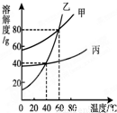 (2)将60℃时甲、乙、丙的饱和溶液降温至40℃,三种溶液的溶质质量分数由大到小为