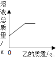 在一定质量的甲溶液中逐渐加入乙至过量,反应过程中溶液的总质量与加入乙的质量关系,能用下图曲线表示的是( )