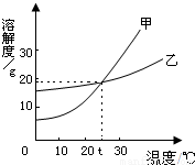 B.t℃时,甲、乙饱和溶液中溶质的质量分数相等