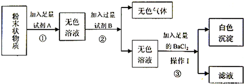 | (1)取少量该溶液于试管中,向溶液中滴加过量氯化钡溶液,并不断振荡. | 有白色沉淀产生. | 说明原溶液中一定含有 . |