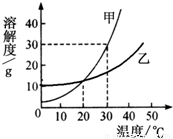 C.将甲溶液从30℃降低到20℃,一定有甲固体析出