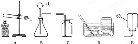 (1)写出有编号仪器的名称:①