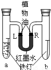 某同学设计了右图所示的装置探究铁锈蚀的条件.a管中装入少量煮沸的蒸馏水,b管中是干燥的空气.调节L端与R端的液面高度一致,塞紧木塞.一周后观察.下列推断错误 的是( )