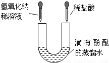 U形管中是滴有酚酞试液的蒸馏水,向左、右两管中分别同时逐滴滴加一定量的氢氧化钠稀溶液和稀盐酸(如图所示).下列说法正确的是( )
