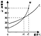1℃时,甲、乙各30g分别加入70g水中均恰好饱和