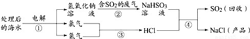 近年来有人提出了利用海水(含氯化钠)处理含二氧化硫的废气,该方法的工艺流程如图所示.