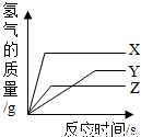 取等质量的X、Y、Z三种金属分别与足量同浓度的稀硫酸反应,都生成+2价硫酸盐,反应情况如图(相对原子质量Mg-24、Zn-65、Fe-56 )则正确叙述是( )