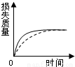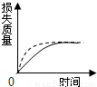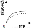 将a g块状碳酸钙跟足量盐酸反应,反应物损失的质量随时间的变化曲线如下图的实线所示.在相同条件下,将b g(a>b)粉末状碳酸钙与同浓度盐酸反应,则相应的曲线(图中虚线所示)正确的是( )