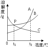 2℃时,A、B、C三种物质中,C物质的溶解度最小