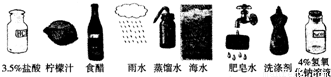 如图是我们身边一些常见物质的pH.据图可知,上述物质显酸性的有:3.5%盐酸、柠檬汁、食醋和______;若向肥皂水中滴入紫色石蕊试液,将呈______色.